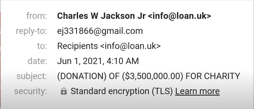 This example is using a more advance method of Spoofing where they take advantage of poor configuration on a legitimate companies email server(I’ll get more into that later) but never the less a personal email for the reply shows a miss match on who the email sender is pretending to be.