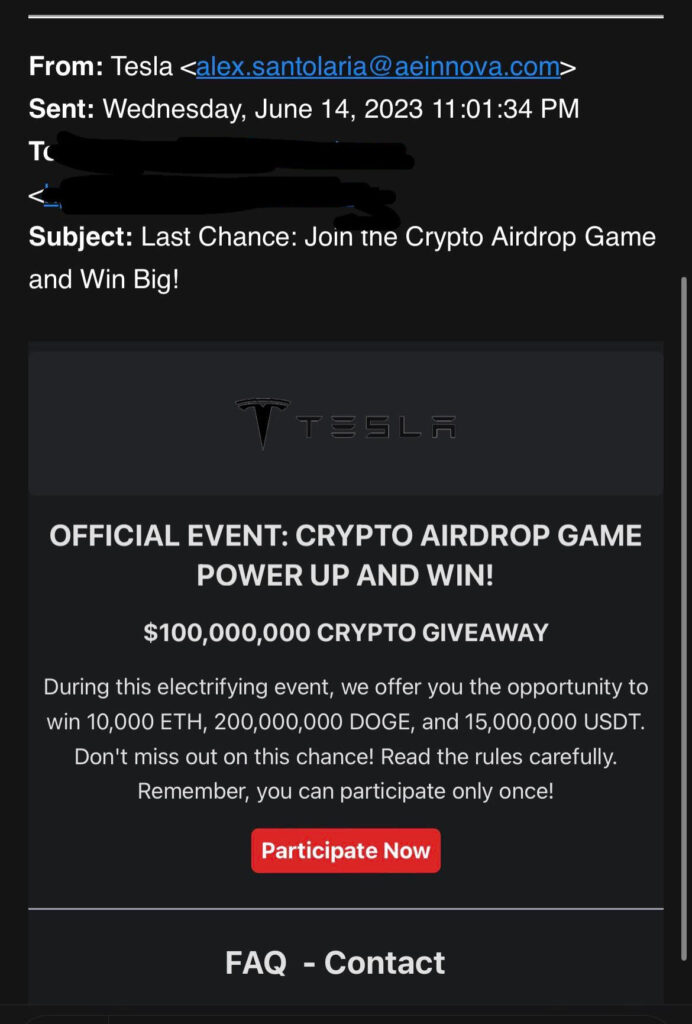 3. Emails stating you have “Won free money” or Gift should also be considered suspicious immediately.